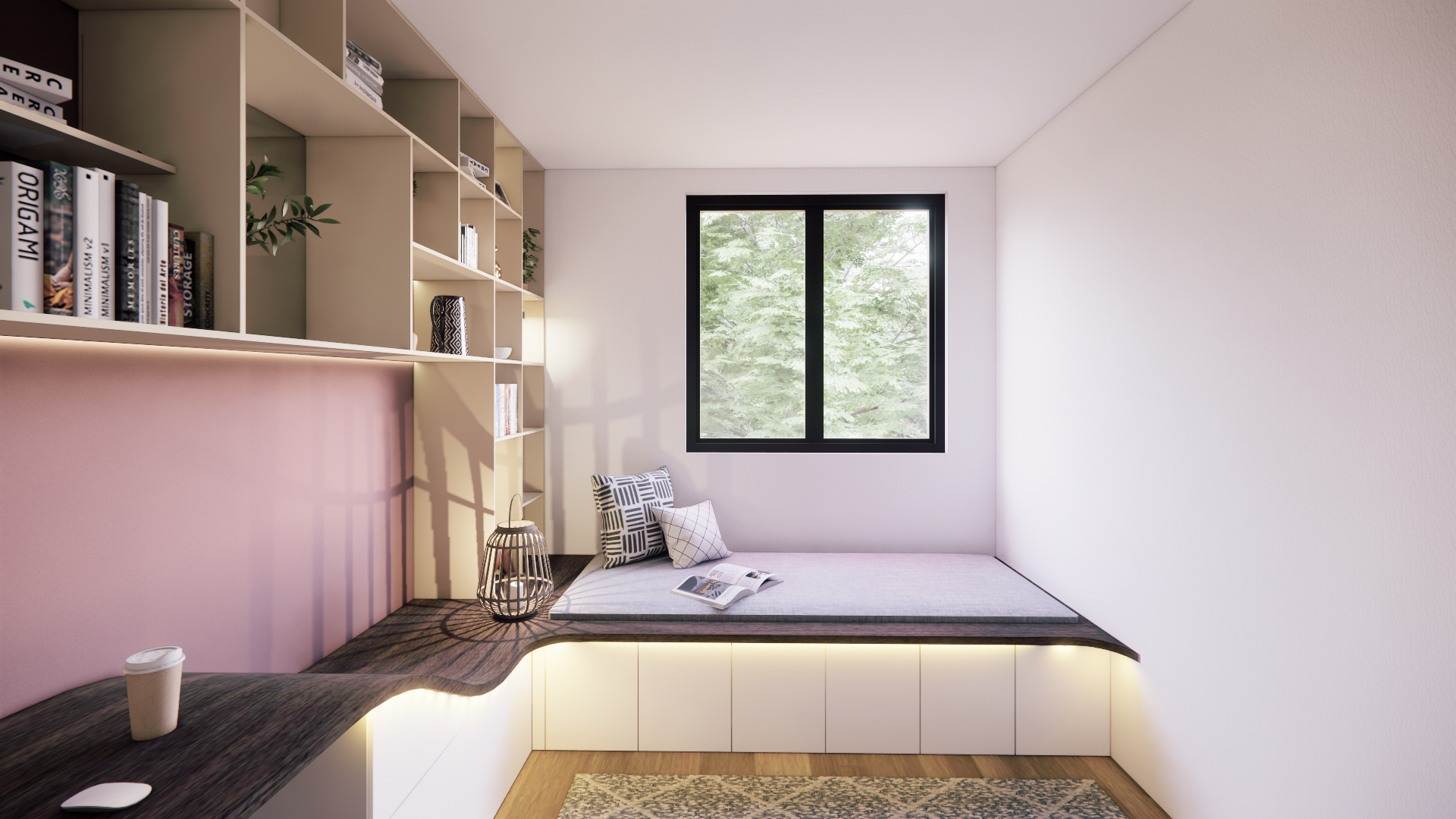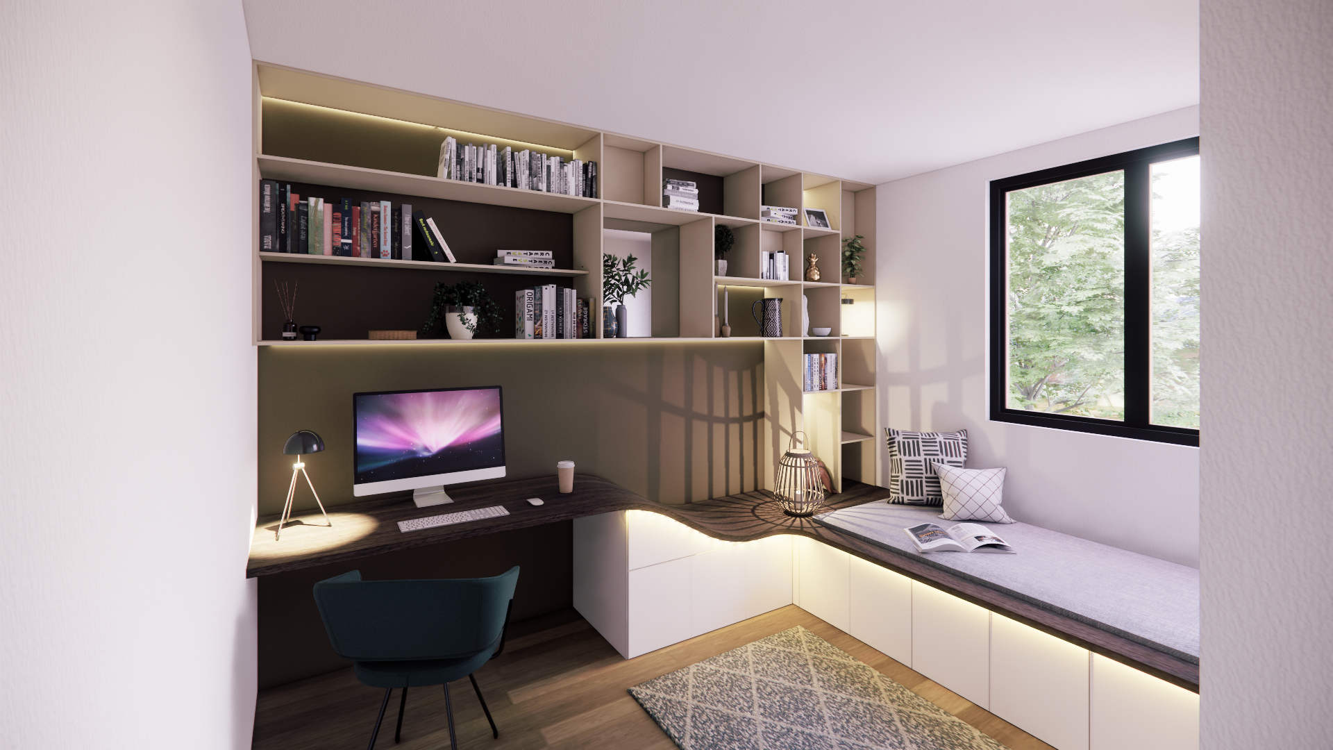 « Cocoon » Aménagement d’un espace privé d’exception, alliant bibliothèque, bureau et coin lecture